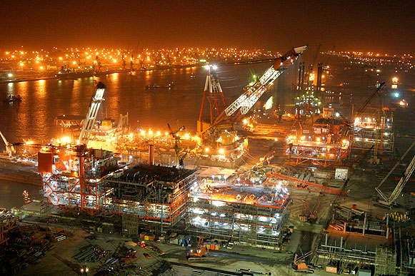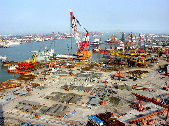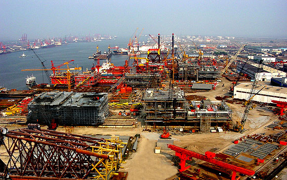 主要設施:分段預制車間、結構預制車間、制管車間、組塊配套車間、噴涂車間、浮體平臺(420m×110m×13.9m)、承載力4000噸~50000噸的滑道5組。
